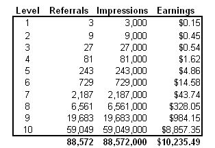 あなたにダウンラインが3人いて、それが10階層あり、
